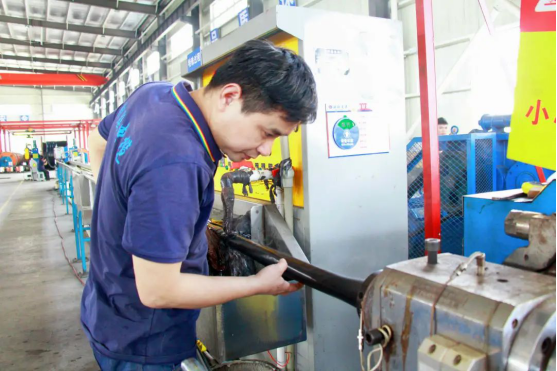 與其他組裝式的產(chǎn)品不同,后期檢查出現(xiàn)質(zhì)量問題,可以拆開重裝或更換零件,電纜的生產(chǎn)制造任何一個部件或工藝工序沒有達(dá)標(biāo),后期是無法挽回和彌補(bǔ)的。因此,電纜生產(chǎn)線上的每一個操作者都是關(guān)鍵人物。作為機(jī)組組長的劉學(xué)文,深知自己肩上的重任,一旦進(jìn)入車間,他便絲毫不敢懈怠,總是在生產(chǎn)線之間來回走動,反復(fù)查看機(jī)器設(shè)備的運(yùn)轉(zhuǎn)情況、第一時間查看電纜成品質(zhì)量,快速發(fā)現(xiàn)問題,解決問題,避免不良品流入下一道工序,不僅保障了電纜質(zhì)量,而且有效提高了電纜的生產(chǎn)效率。