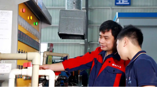 ▲劉學(xué)文正在給同事演示機(jī)器操作