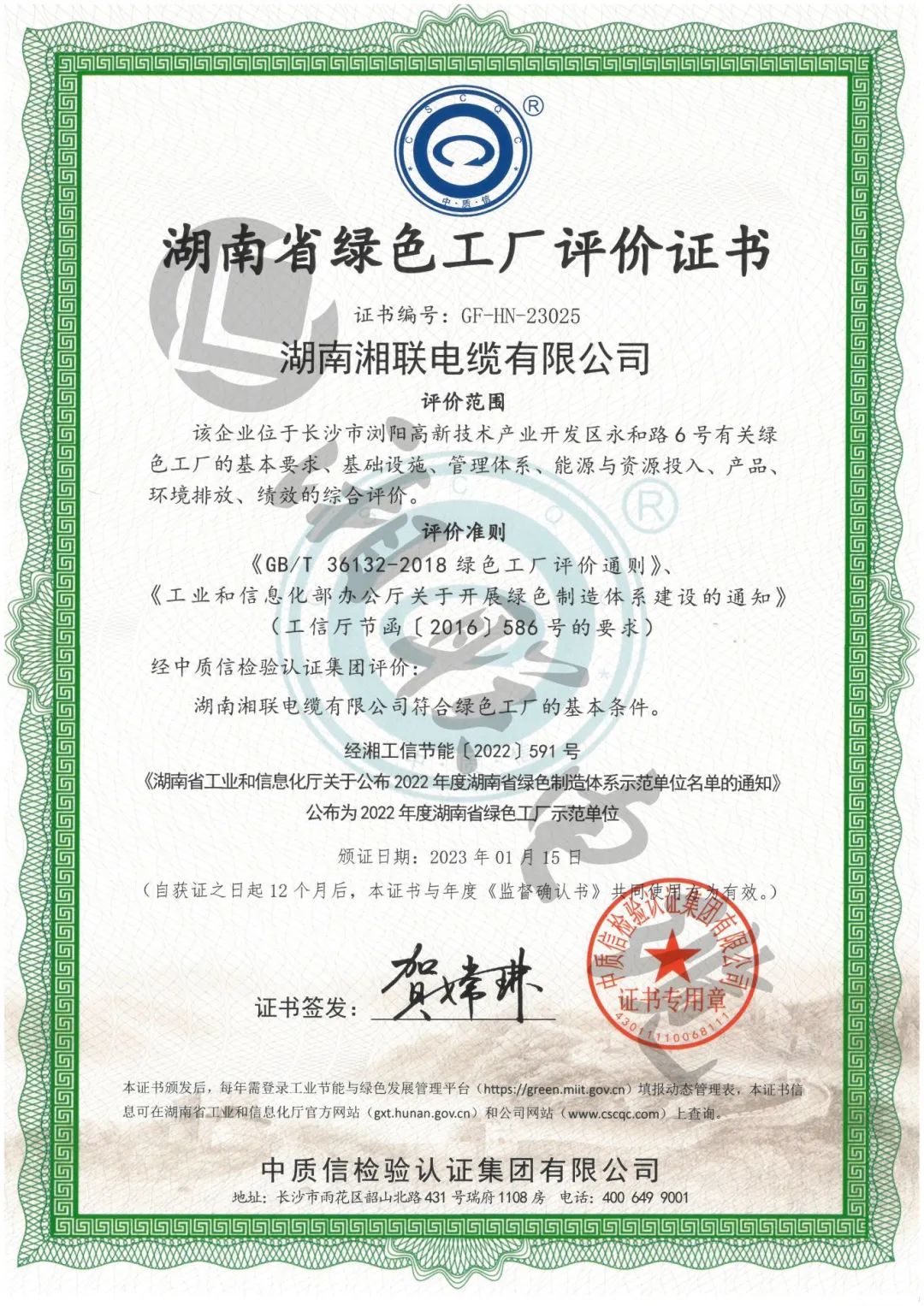 在這樣的時代背景下,湘聯電纜積極踐行“綠水青山就是金山銀山”的發展理念,協同推進減污、降碳、擴綠、增長,堅持生態優先、節約集約、綠色低碳的發展道路,將綠色理念貫穿于全產業、全鏈條和全過程,并于2023年成功入選湖南省綠色工廠示范單位。