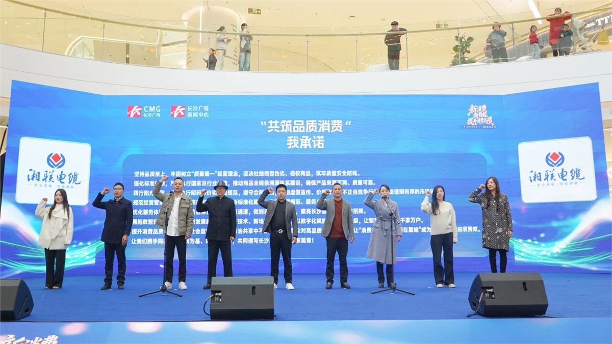 在活動啟動儀式上,湘聯電纜與其他重點企業代表共同登臺,鄭重宣讀了 《共筑品質消費》承諾宣言。一句句鏗鏘有力的誓言,不僅是對廣大消費者的莊嚴承諾,更是企業堅守“誠信經營、品質為先”的初心寫照。湘聯電纜以實際行動表明,將始終把產品質量和消費者權益放在首位,為構建健康、有序、可持續的消費市場環境不懈努力。