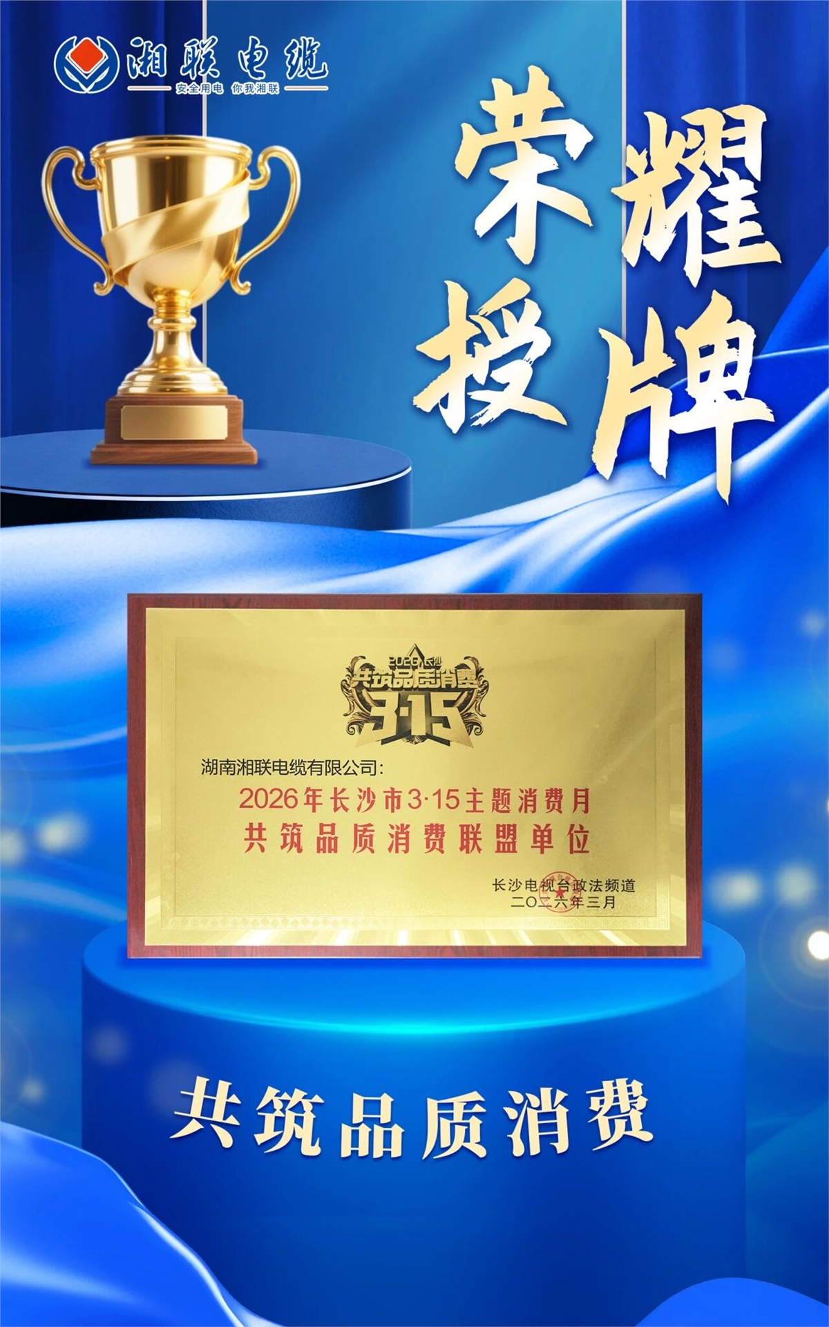憑借過硬的產品品質、良好的市場口碑以及長期堅守的誠信理念,湘聯電纜與招商蛇口長沙分公司、幾多全超市等12家單位一同榮獲“共筑品質消費聯盟單位”授牌。這份榮譽既是認可,更是鞭策,激勵著湘聯電纜始終以高標準、嚴要求深耕線纜領域,做讓消費者放心的民族品牌。