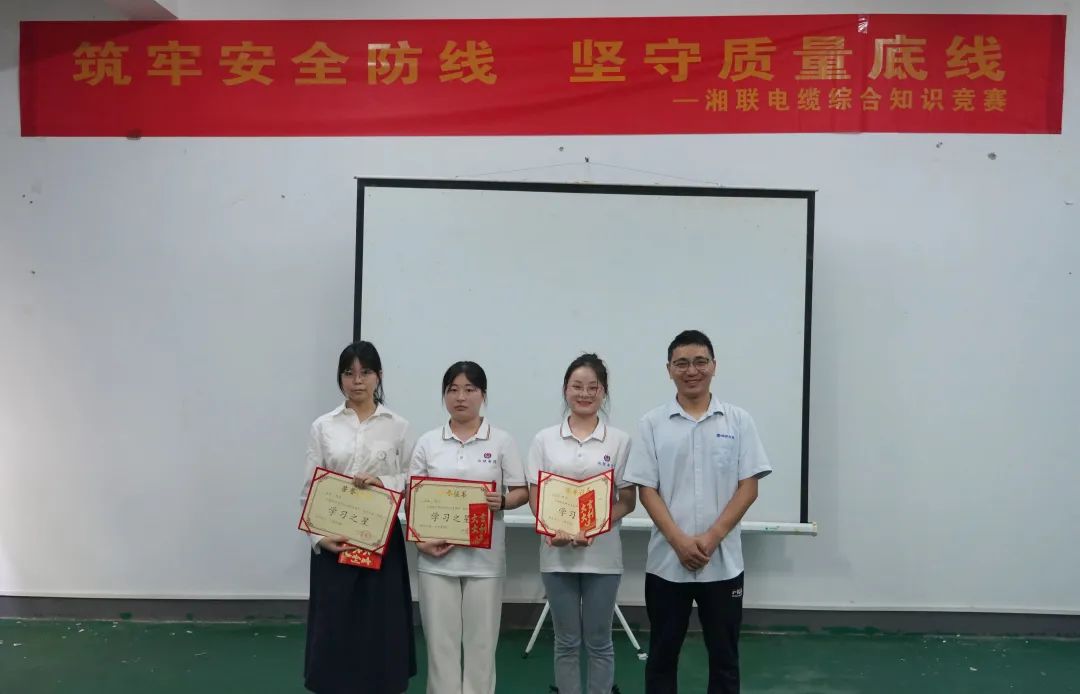 為促進(jìn)員工自主學(xué)習(xí)安全生產(chǎn)、產(chǎn)品質(zhì)量、企業(yè)文化、黨建引領(lǐng)等知識(shí),提升自身安全、質(zhì)量意識(shí)及綜合素養(yǎng),進(jìn)一步強(qiáng)化公司安全及質(zhì)量管理,2023年5月26日下午,湘聯(lián)電纜隆重舉辦2023年度知識(shí)競(jìng)答賽,充分營(yíng)造“以賽促學(xué),以學(xué)促行”的良好氛圍。
