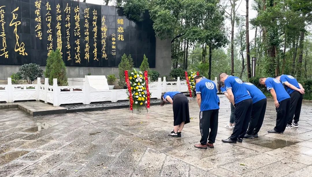 伴隨著綿綿細雨,懷著崇敬的心,大家從紀念館參觀學習后,走進楊開慧烈士陵園,全體黨員在楊開慧烈士墓前肅立、鞠躬,表達對“驕楊”的追思和敬仰